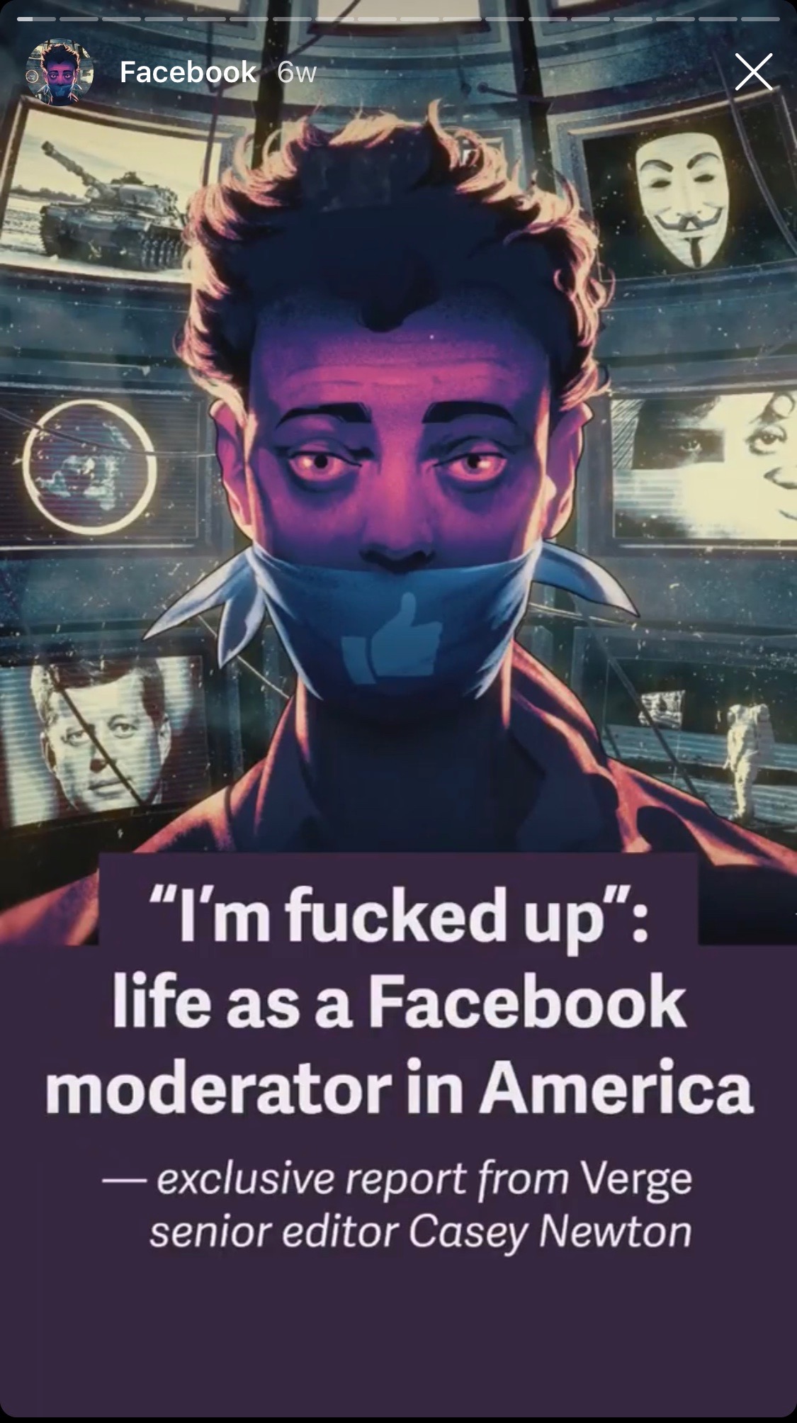 Casey Newton’s story being pushed in The Verge’s Instagram Story